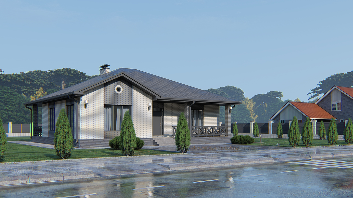 Такой дом будет удобен для семьи из 3–4 человек или пары, ценящей просторную зону отдыха и функциональное зонирование. Благодаря одноэтажной планировке дом идеально подходит для постоянного проживания без лестниц и перепадов уровней.