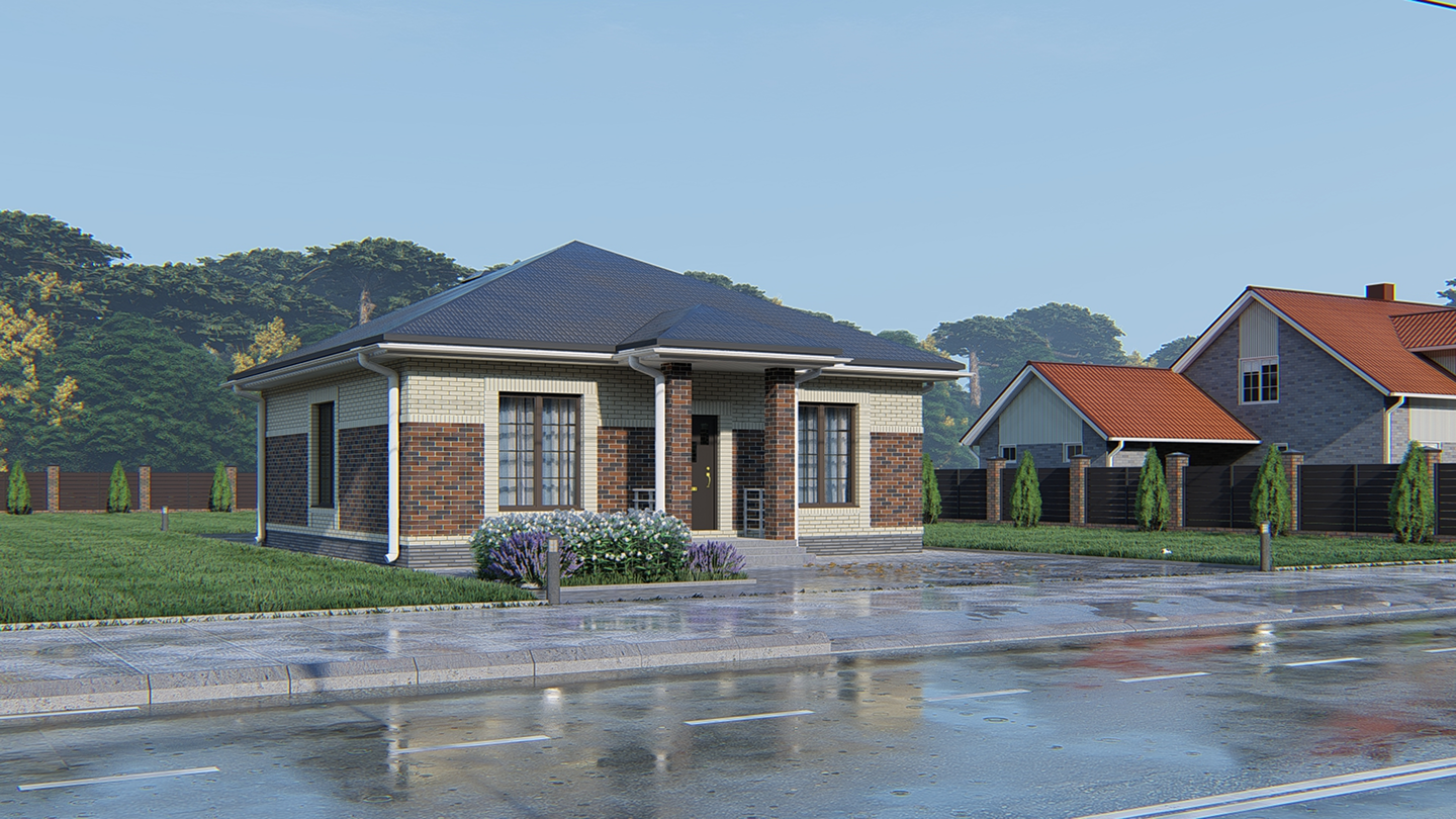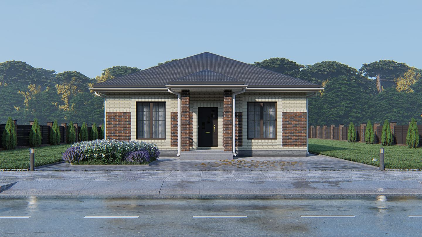 Дом спроектирован так, чтобы всё необходимое для жизни семьи было под рукой: просторная гостиная для встреч, удобные спальни для отдыха и рациональное распределение площадей.