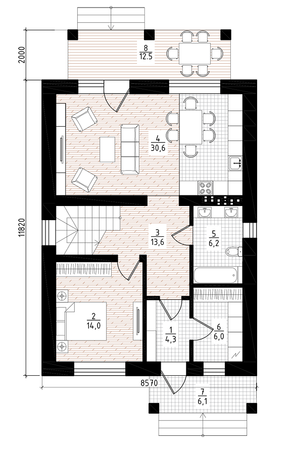 Такой дом идеально подойдёт для семьи из 4–7 человек, где важны как просторные общие зоны, так и отдельные спальни для каждого. Также это отличный вариант для тех, кто любит собирать у себя гостей или ценит возможность уединиться в своём уголке.